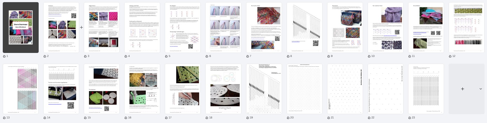 In derselben Technik habe ich im Jahre 2022 einen Set von Deckchen geklöppelt, den ich zu der Biennale der tschechischen Spitzen angemeldet habe. Meine Arbeit wurde zu der Biennale zwar nicht angenommen, dafür habe ich daran das Ausschneiden und Umranden von runden Formen sehr intensiv geübt – und ich bin sicher, dass es auch denen gelingt, die nach meiner Anleitung vorgehen.